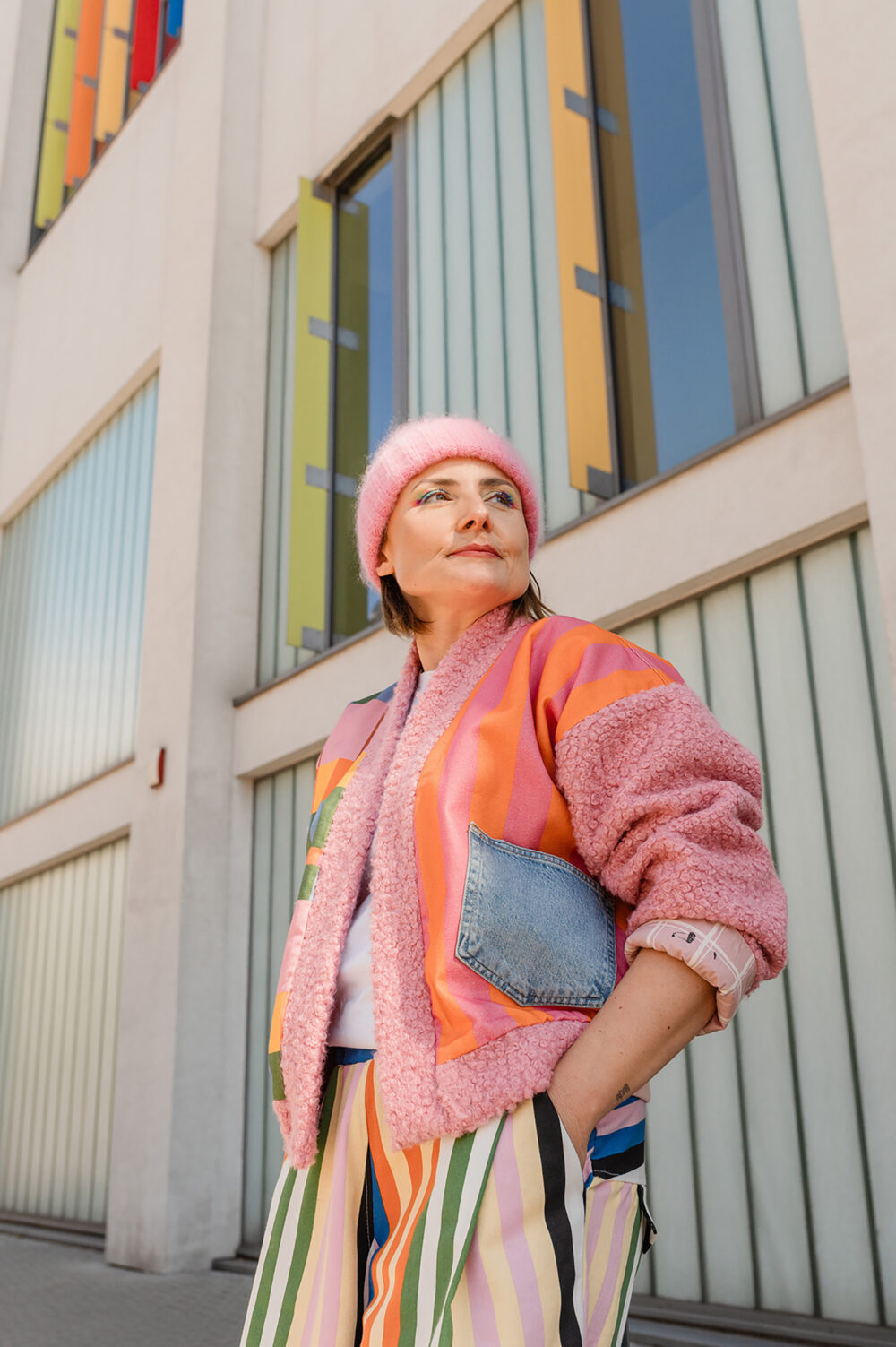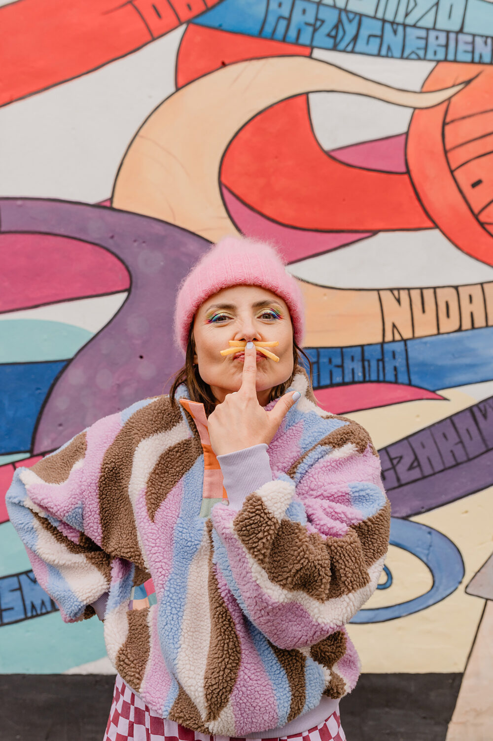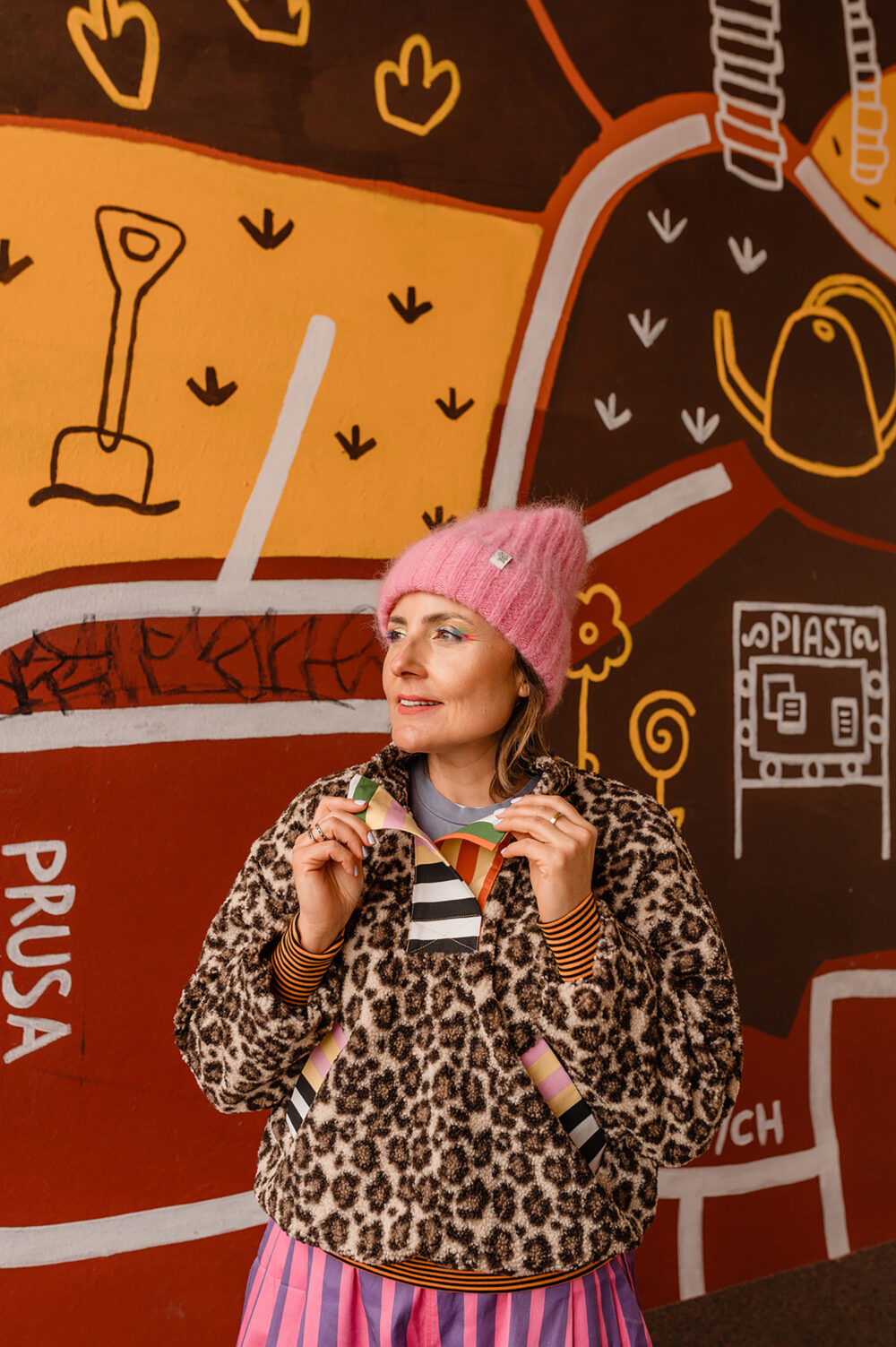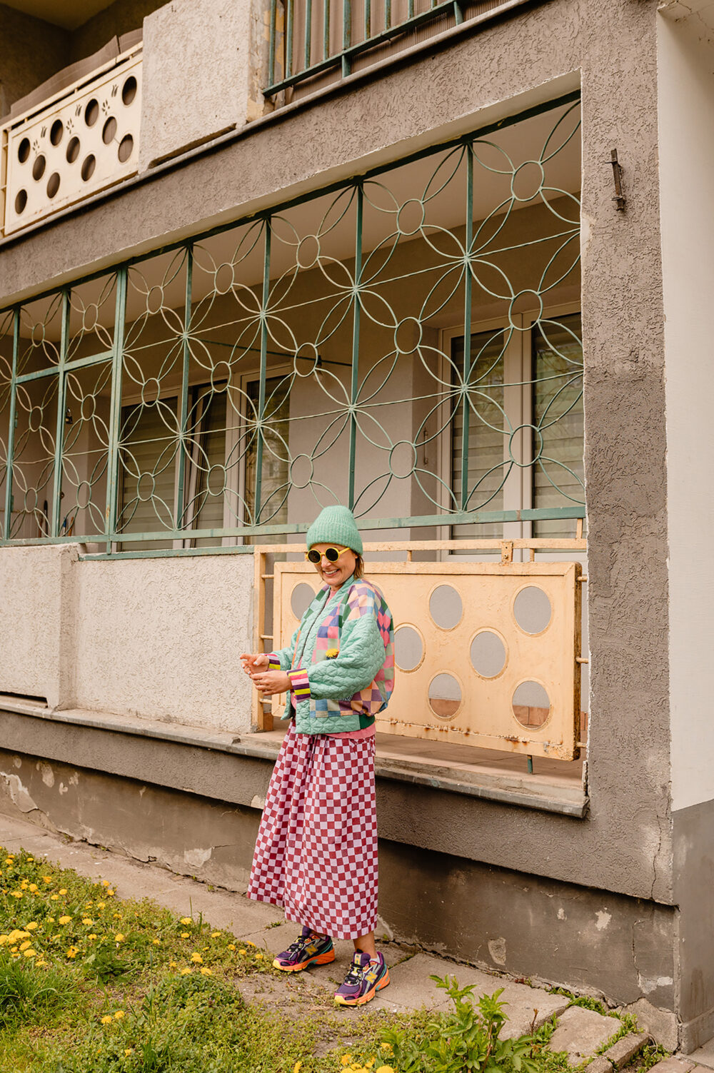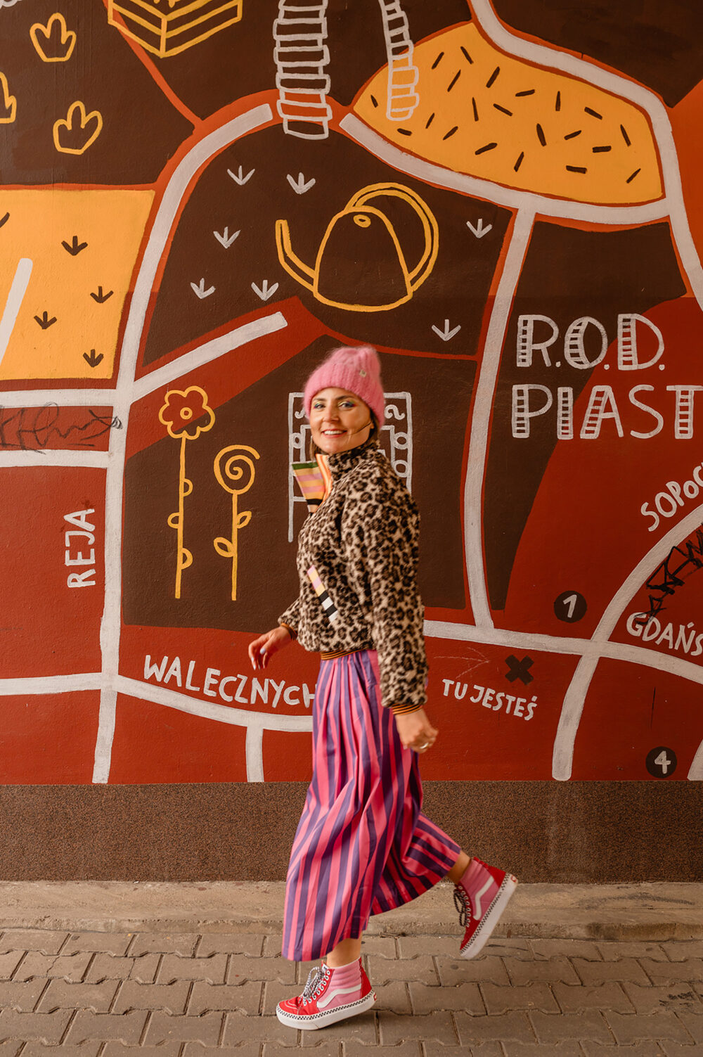 Z Karoliną to był szaaaał! Szał kolorów, wzorów i energii :D jej, naszej i jej ubrań. Stworzyłyśmy zdjęcia, które pokazują, jak jej projekty – bomberki, płaszcze, spodnie genialnie wpisują się w tkankę miasta. Są jej idealnym dopełnieniem. Wszystko tutaj gra, pasuje do siebie, miasto opowiada o Karolinie – Gluckiej. Przyjrzyjcie się bliżej naszym zdjęciom. Już wkrótce opowiem Wam dokładniej o tej sesji contentowej.