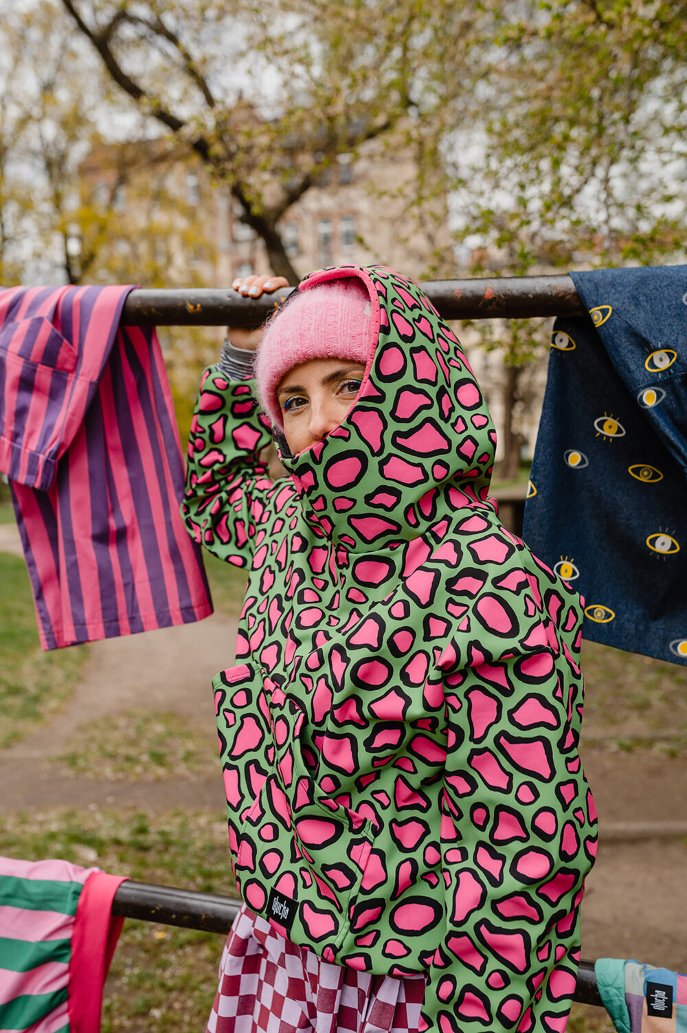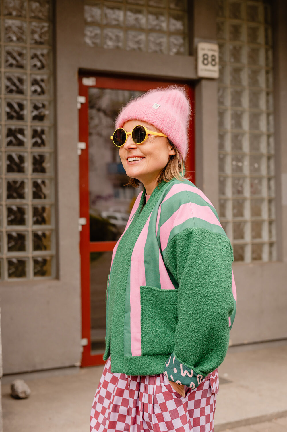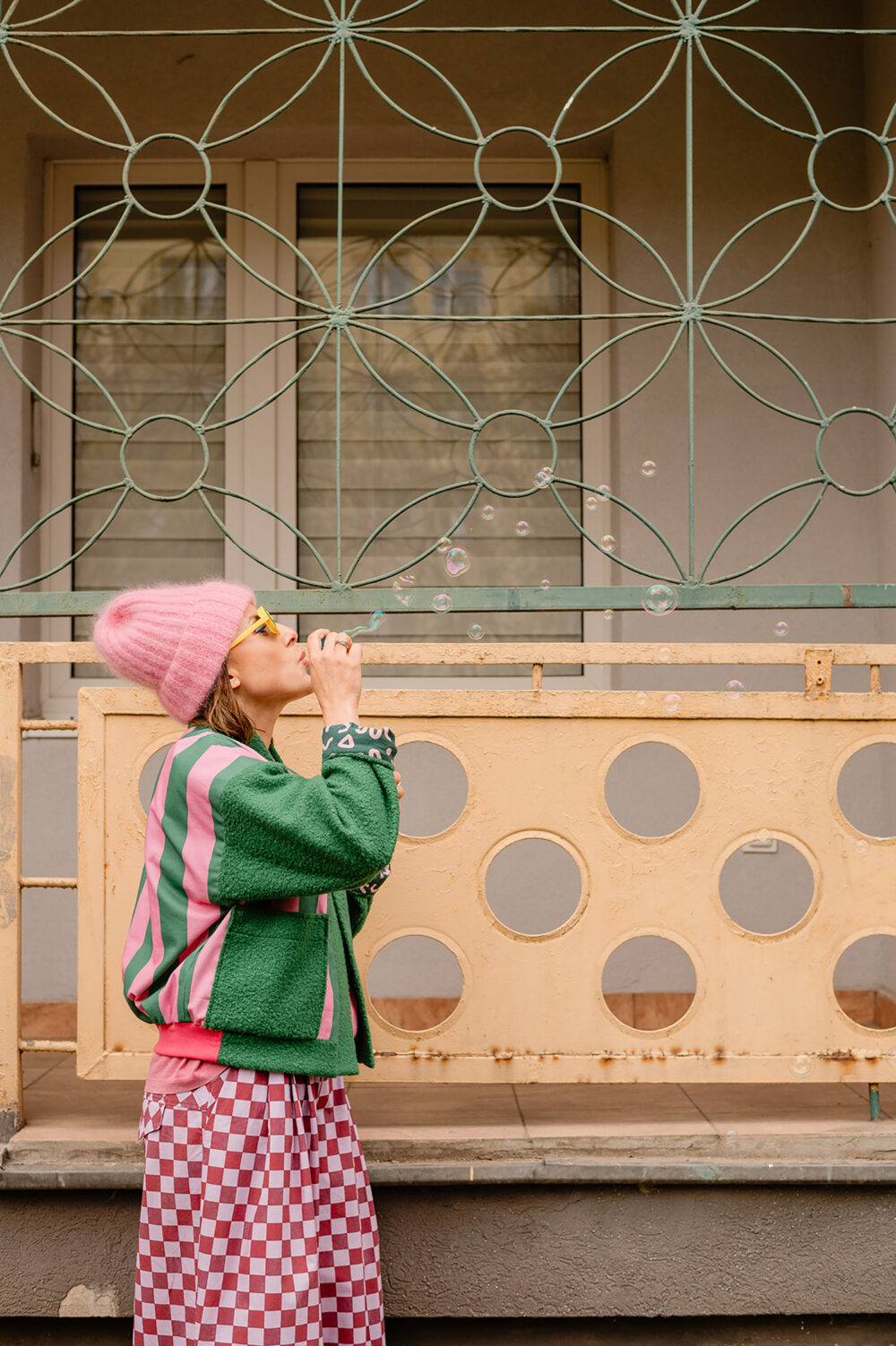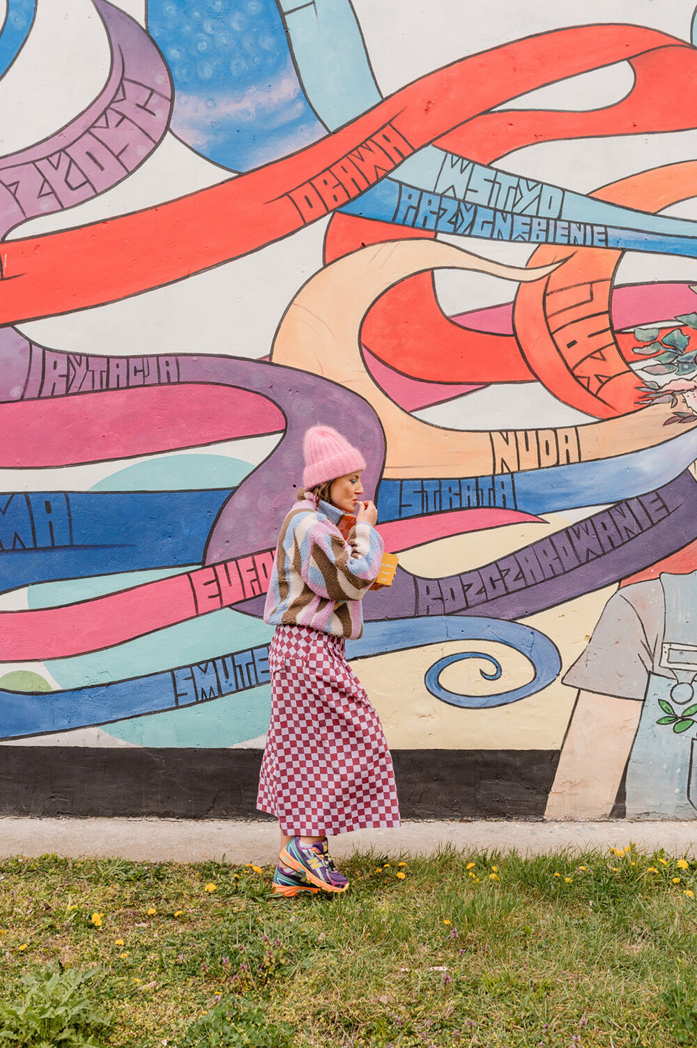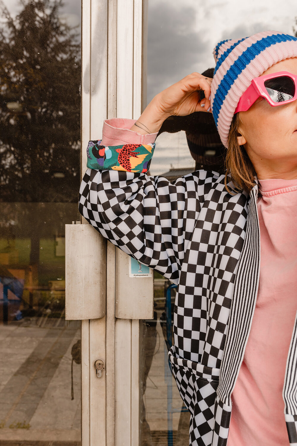 Z Karoliną to był szaaaał! Szał kolorów, wzorów i energii :D jej, naszej i jej ubrań. Stworzyłyśmy zdjęcia, które pokazują, jak jej projekty – bomberki, płaszcze, spodnie genialnie wpisują się w tkankę miasta. Są jej idealnym dopełnieniem. Wszystko tutaj gra, pasuje do siebie, miasto opowiada o Karolinie – Gluckiej. Przyjrzyjcie się bliżej naszym zdjęciom. Już wkrótce opowiem Wam dokładniej o tej sesji contentowej.